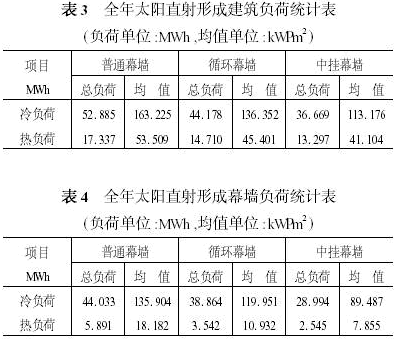 上面分析了影響負荷的幾個主要因素,包括冷熱負荷峰值、太陽直射、玻璃導熱及滲風形成的負荷,事實上還有墻體、屋頂以及室內人體與照明形成的負荷,本文僅針對幾個與幕墻相關的主要因素進行分析。