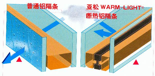 導(dǎo)熱率很高的鋁隔條傳遞,也曾經(jīng)使中空玻璃的