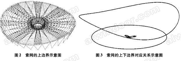 該幕墻索網的一個基本要求就是平滑的連接上下邊界,索網所形成的不規則曲面要平滑過渡。此外,我們還希望索網所張成的曲面具有合理的曲率特征,以方便