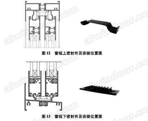 窗扇兩勾邊中挺因要搭接并要保證密封,所以密封條不能太厚也不能太硬,片狀的密封條應(yīng)為首選如圖14所示,材料應(yīng)為邵氏HA60~70為好,密封條與另一窗扇勾邊不能有間隙,必須有過盈,過盈量應(yīng)在窗的原始狀態(tài)1~2mm為好,這樣既不影響窗扇的開啟力,并能保持窗的中部密封。
