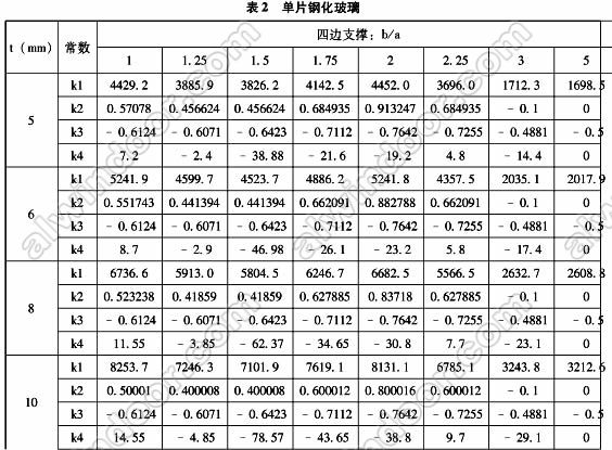 力學(xué)性能研究試驗(yàn)量巨大,耗時(shí)長,因此各國在當(dāng)時(shí)基本上都是采用類似的計(jì)算方法,我國的工程行業(yè)標(biāo)準(zhǔn)《建筑玻璃應(yīng)用技術(shù)規(guī)程》