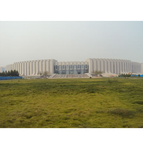 屋脊弦梁與跨間懸鏈梁的復合結構,可形成90米×200米的全無柱空間。這是最初設計的構想,但在設計后期,利用功能上的調整,整個空間被劃分為四組并置的展覽空間,通過與門式鋼架系統在造價、效果、施工便利性等方面的綜合對比后,選擇了具有足夠優勢的懸鏈系統。