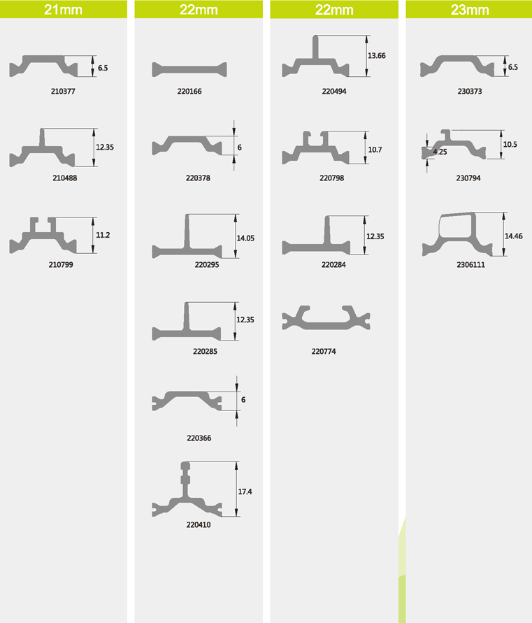 • CF型條一般用于窗。它是在C型條的平背上裝有一個鰭板,鰭板可用于壓在密封條上,可起到密封作用。