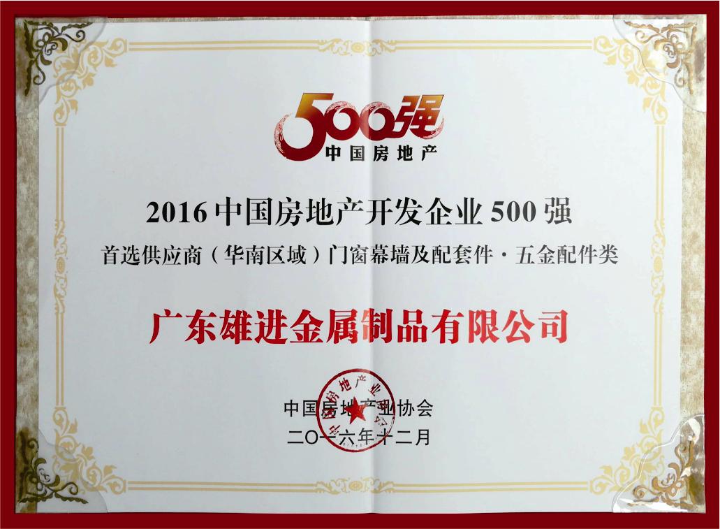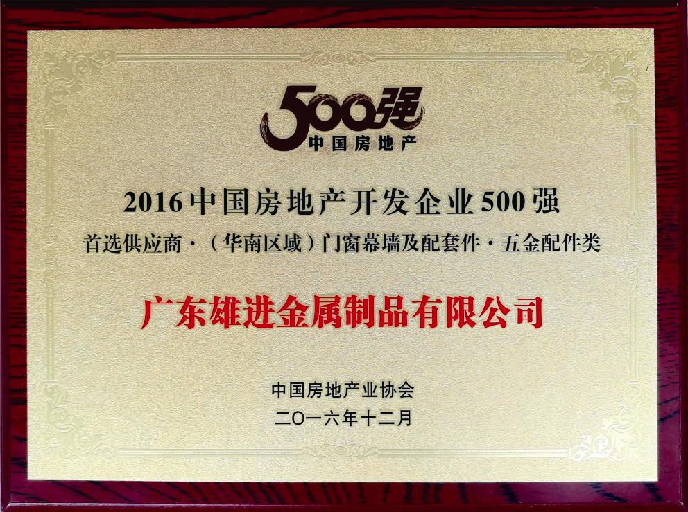 2016中國房地產開發企業500強首選供應商華南區域門窗幕墻及配套件五金配件類 |