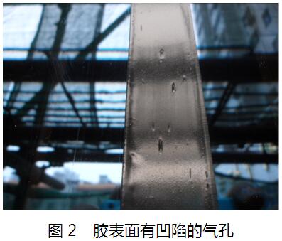 1) 注膠不飽滿時進行修整,氣泡分散在膠表面,形成凹陷的氣孔。如圖2: