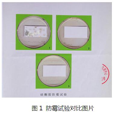 圖1為防霉試驗對比圖片,左上方試樣為普通密封膠,右上方和下方試樣為防霉密封膠。