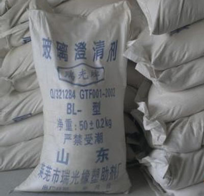 1,白砒 又稱亞砷酐,是澄清效果極好的一種常用澄清劑,玻璃行業(yè)俗稱“澄清王”。但白砒必須與硝酸鹽配合使用才能達到良好的澄清效果。白砒微溶于冷水,易溶于熱水,劇毒,呈白色結(jié)晶粉末或無定形的玻璃狀物質(zhì),黃金冶煉副產(chǎn)品砷灰常呈灰白,灰色或灰黑色等,作為澄清劑多用晶態(tài)白砒。當白砒加熱到400度以上時,與硝酸鹽在高溫時放出的氧氣生成五氧化二砷,加熱至1300度時,五氧化二砷分解生成三氧化二砷,使玻璃液氣泡中氣體的分壓減少,有利于氣泡的長大,加速氣泡的排除,從而達到澄清的目的。