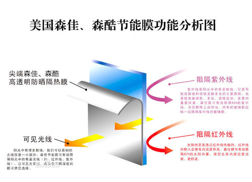 概述 節能膜是太陽膜中控制陽光功能的膜稱為節能膜。 太陽膜分類 1:普通膜 2:染色膜:A一種是沒有耐磨層質地非常次的染色膜,另外一種B是深層染色膜,在質量好的聚脂上進行染色加工,聚酯薄膜本體可以被染成各種美麗奪目的色彩。染色膜不含金屬成分。他們可以減少眩目強光和阻止褪色,還可以減少吸熱引起的熱量蓄積。 3:金屬防爆膜,正如玻璃一樣,通過應用熱蒸發(對于低熔化溫度的純金屬而言)或濺射噴鍍工藝,膜可以鍍上各種金屬、合金或氧化涂層。真空噴鍍工藝(真空噴鍍室如圖所示)通常用純鋁鍍膜,并且可以制成不同可見光透過率和反射率的膜,使膜具有最佳的陽光控制性能。 真空濺射工藝通常在一個很大的真空室、壓力很低的惰性氣體環境中及電能作用下進行。各種金屬或金屬合成靶材被帶電離子撞擊,造成金屬原子成為自由粒子沉積在上面的聚酯薄膜的表面。這就形成了膜的各種各樣獨特的穩定的色彩、高層次的透過率選擇性以及最佳的陽光控制性能。 金屬鍍膜、磁控濺射膜、深層染色膜或高透明膜組合成一系列膜的結構以應用于汽車、建筑、裝飾和安全防爆等領域。由于膜的類型和夾層工藝的不同,膜的抗沖擊、抗穿刺和抗撕裂性可以有所不同。最后把防劃傷涂層和保護膜也被加至膜的結構中。 4:陶瓷膜 5:節能膜 6:安全膜也叫防爆膜 7:真空金屬噴鍍、磁控濺射鍍膜、防粘保護膜、涂層及夾層合成、深層染色膜的制造商FTISUNCOOL森酷膜、森佳膜、龍膜、強生膜、威固、量子膜、3M膜、雷朋膜、威固膜等等。