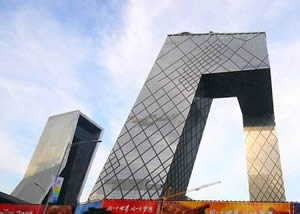 中央電視臺(tái)總部大樓 中央電視臺(tái)總部大樓位于北京商務(wù)中心區(qū),內(nèi)含央視總部大樓、電視文化中心、服務(wù)樓、慶典廣場(chǎng)。 由荷蘭人雷姆·庫(kù)哈斯和德國(guó)人奧雷·舍人帶領(lǐng)大都會(huì)建筑事務(wù)所(OMA)設(shè)計(jì)。中央電視臺(tái)總部大樓建筑外形前衛(wèi),被美國(guó)《時(shí)代》評(píng)選為2007年世界十大建筑奇跡,并列的有北京當(dāng)代萬(wàn)國(guó)城和國(guó)家體育場(chǎng)。中央電視臺(tái)總部大樓從最初的50億工程預(yù)算,一路攀升至近200億。并且支付給設(shè)計(jì)方大都會(huì)建筑事務(wù)所高達(dá)3.5億的設(shè)計(jì)費(fèi)用,平均達(dá)630元每平方米。 其中北配樓在2009年2月9日元宵節(jié)的火災(zāi)中嚴(yán)重焚毀。2009年10月底開(kāi)始進(jìn)行修復(fù)工作,竣工后,已成功得到驗(yàn)收。央視體育頻道于2012年6月5日率先搬遷到東三環(huán)的新臺(tái)址辦公,并在新臺(tái)址進(jìn)行倫敦奧運(yùn)會(huì)的賽事轉(zhuǎn)播· “2013年度高層建筑獎(jiǎng)”評(píng)選7日晚在美國(guó)芝加哥揭曉。中央電視臺(tái)新址大樓獲得最高獎(jiǎng)——全球最佳高層建筑獎(jiǎng)。 1簡(jiǎn)介 概要 中央電視臺(tái)新臺(tái)址位于北京市朝陽(yáng)區(qū)東三環(huán)中路(原“北汽摩廠址”),緊臨東三環(huán), 地處CBD核心區(qū),占地 197000平方米。總建筑面積約55萬(wàn)平方米,最高建筑234米,工程建安總投資約50億元人民幣。建設(shè)內(nèi)容主要包括:主樓(CCTV)、電視文化中心(TVCC)、服務(wù)樓及媒體公園。項(xiàng)目建成后,中央電視臺(tái)將具備200個(gè)節(jié)目頻道的播出能力。 該建筑由世界著名建筑設(shè)計(jì)師、荷蘭人雷姆·庫(kù)哈斯擔(dān)任主建筑師,荷蘭大都會(huì)建筑事務(wù)所負(fù)責(zé)設(shè)計(jì)。中央電視臺(tái)新臺(tái)址中將建五星級(jí)酒店,CCTV大樓主要由兩部分功能組成,即五星級(jí)酒店和電視文化中心。酒店設(shè)置在CCTV大樓主體內(nèi)。大樓的四五層內(nèi)設(shè)酒店大堂及餐廳、商店、游泳池等公共活動(dòng)場(chǎng)所。大堂上部南北兩側(cè)為300間客房合圍成的中庭,主樓頂部為酒店的風(fēng)味餐廳。